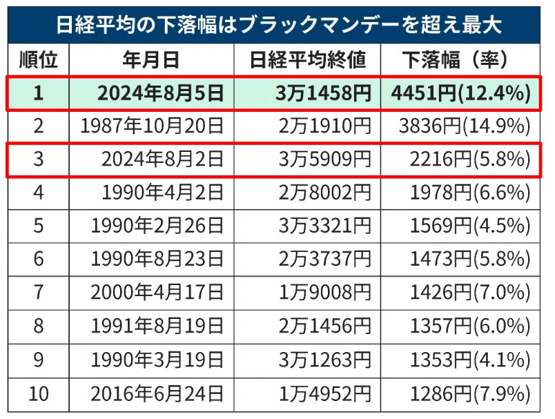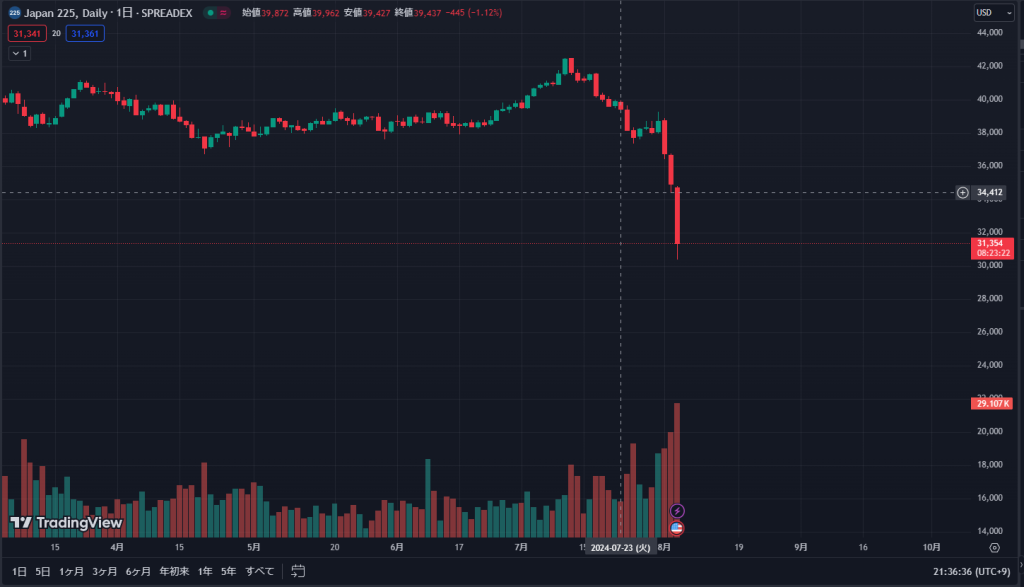 その下落速度は、8月から一気に加速し、8月5日には、過去最大の下げ幅を記録しました。
