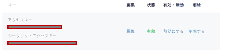 - 貼り付け箇所は、以下のコードの’アクセスキーを入力’と ‘シークレットキーを入力’です