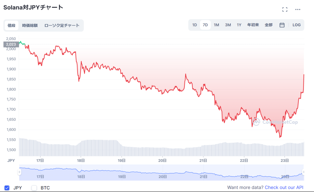 SOLは、ライトコインの時価総額を下回るレベルまで急落しました。