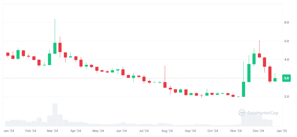 - 市場全体の盛り上がり: アメリカ大統領選挙で暗号資産に友好的なドナルド・トランプ氏が当選したことや、ビットコイン(BTC)の価格が10万ドルを突破するなど、市場全体が強気相場となりました。この流れにより、XYMも他のアルトコインとともに価格上昇を見せました。