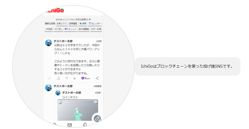 - IchiGoは、簡単な操作でXYMによる投げ銭ができることSNSサービス