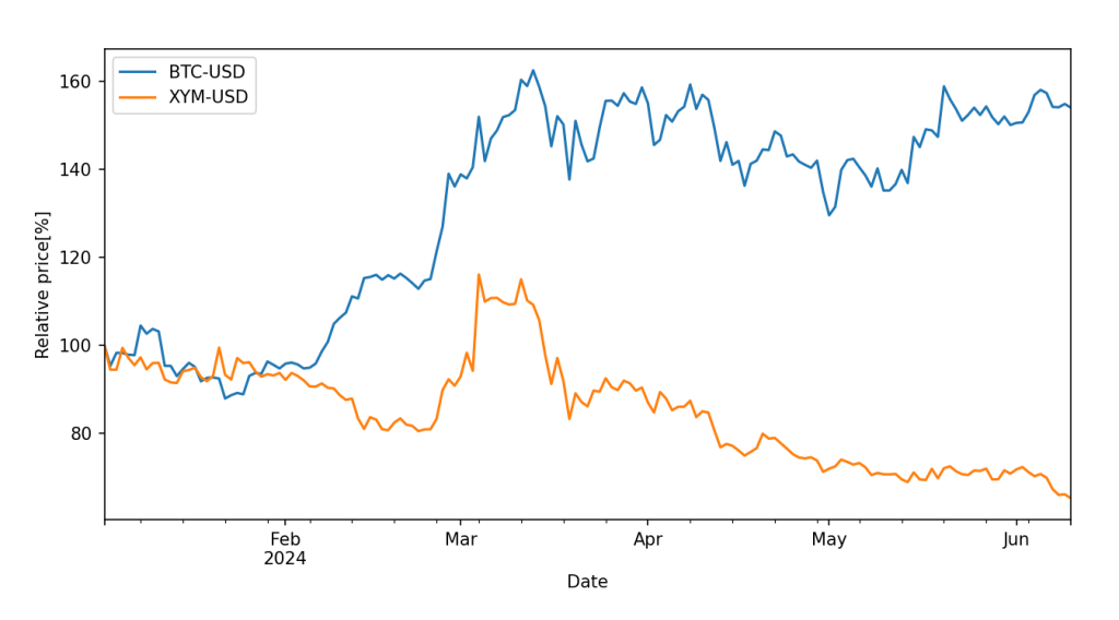 - 2022年から続く下落トレンドをビットコインは抜けつつあるも、XYMは抜けられないため