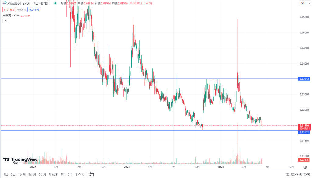 2024年6月現在は、0.018$付近のサポートライン付近のため、短期的な反発を狙える可能性があるでしょう。